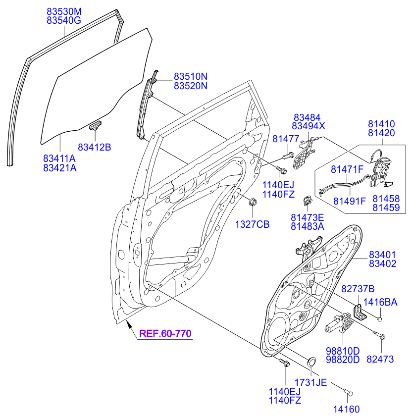 - REGULATOR ASSY-RR DR WDO LH