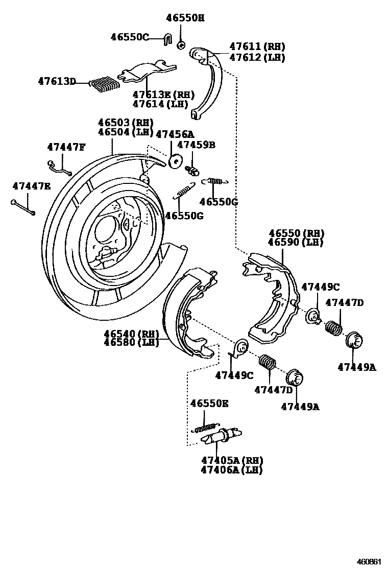 Parts meeting the search criteria : Toyota Camry Aurion Vista 2007 GL TYPE 2400CC 16 VALVE DOHC EFI PARKING BRAKE SHOE ASSY 4659033020