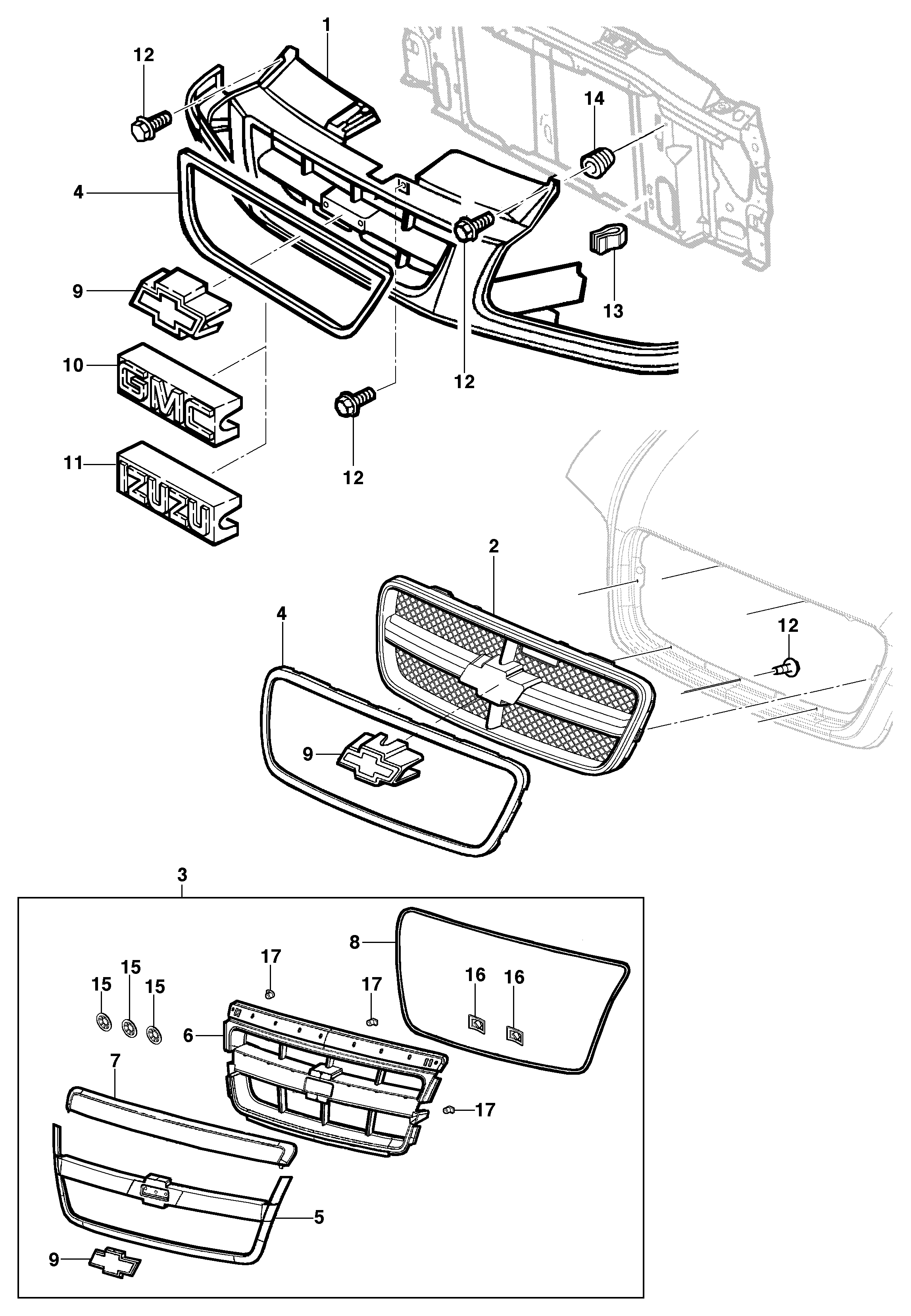 Parts meeting the search criteria : Chevrolet Blazer 2009 GRILLE 94729896
